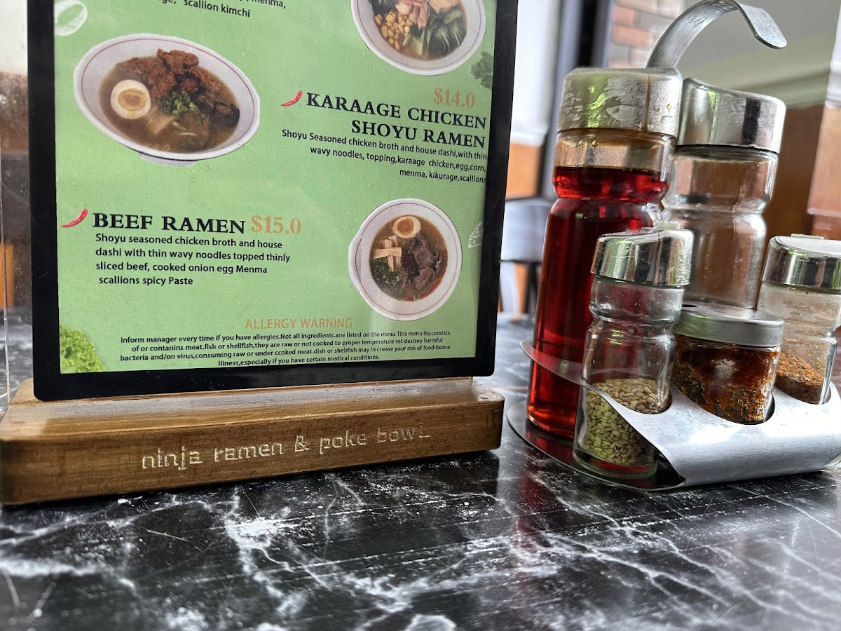 With just a few tables for dining and convenient roadside parking, Ninjas Ramen & Poke Bowl is the perfect spot for a quick, satisfying meal.